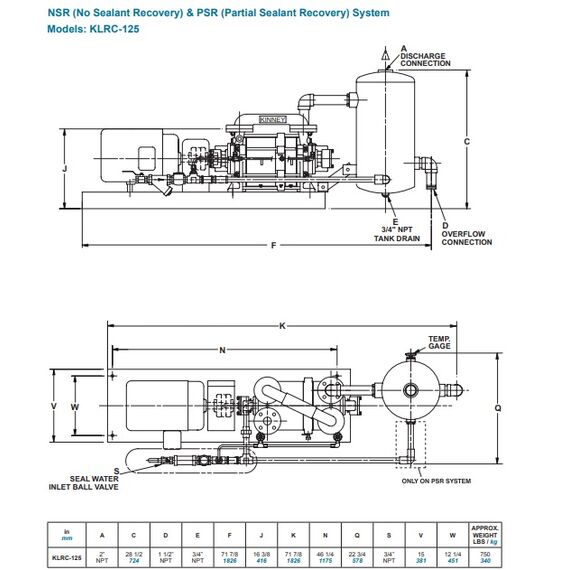 Двухступенчатый водокольцевой KLRC-125 (240м3/ч) Kinney вакуумный насос