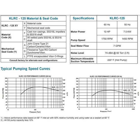 - Pumping speed: 140 CFM @ 100 Torr